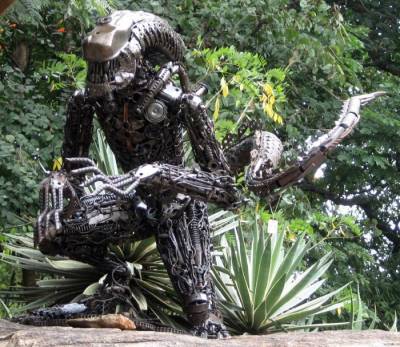 Фотографии красивых скульптур, выполненных мастером из деталей автомобилей. Если присмотреться - можно заметить клапана, цепи и так далее.